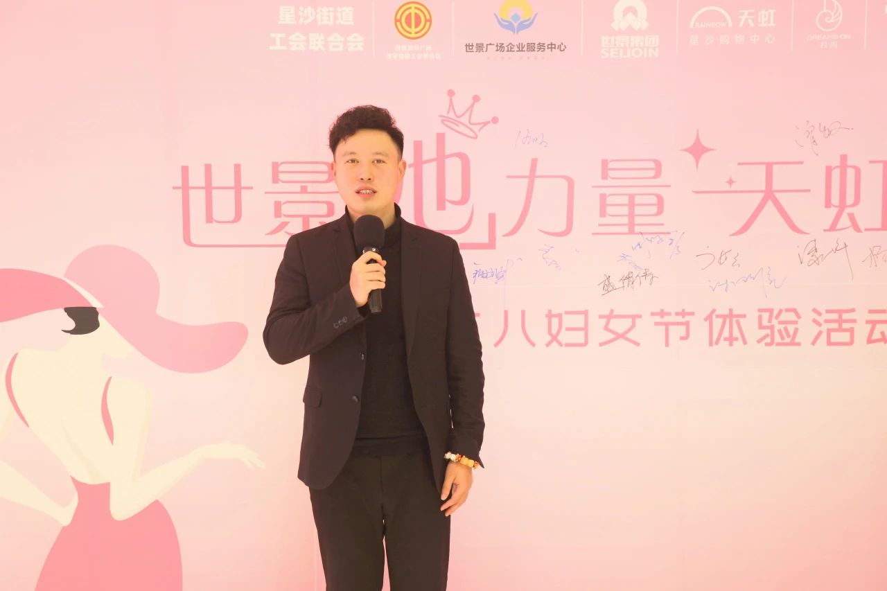 活动伊始,星沙天虹购物中心副总经理漆峰致辞,介绍了天虹购物中心三八妇女节满减礼遇活动,未来也将持续打造有温度、有创意的体验场景,希望每一位女性都能找到属于自己的高光时刻。随后,世景国际广场楼宇商圈工会联合会主席李阳女士温情致辞:每一位女性都是星河中不可或缺的光,在这特别的日子里,愿你们都能为自己而活,去拥抱期待的远方,去追逐熠熠生辉的梦想,在热爱中尽情绽放自己!